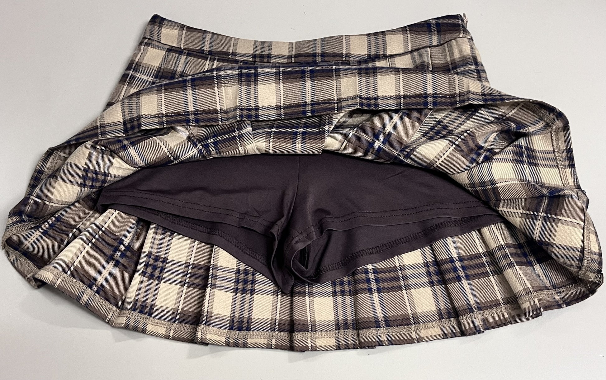 The Penny Skirt combines classic brown plaid with a modern twist, featuring built-in shorts for comfort and confidence. Its pleated design adds a flattering fit, making it ideal for layering with a tucked-in sweater and boots. Perfect for stylish, effortless looks that move with you throughout the day.